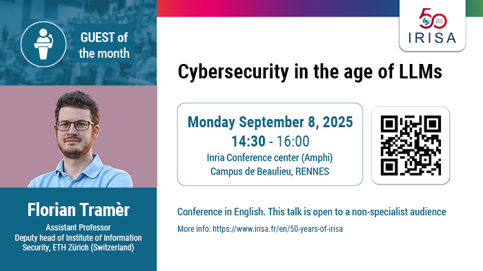 Accueil - Conférence La cybersécurité à l’ère des LLM – 50 ans de l’IRISA - Florian_Tramer_visuel_comm