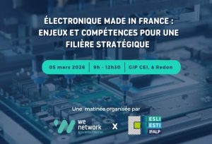 We Network et le GIP CEI (Campus Esprit Industrie) vous convient à une matinée d’échanges sur les grands enjeux de la filière de l’assemblage électronique, notamment en termes de compétences, formation et attractivité.